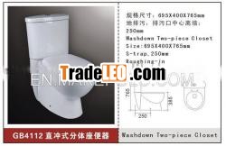 Washdown Two-piece toilet: ceramic, siphon flushingMaterial: Ceramic