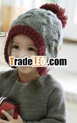 warm knitted winter children hat with ball ontop