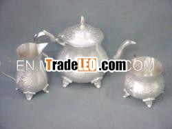 1) Brass Tea set silver plated2) Set of 3 Pics. with gift velvet box packing.