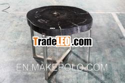 Side Table created from Fossil wood and stainless steel