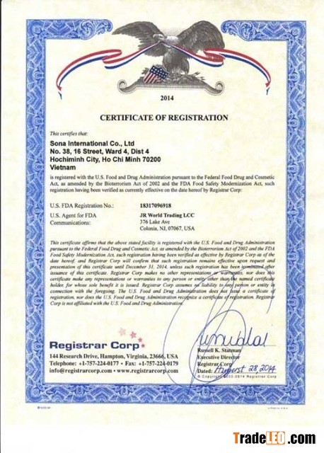 Certification: ISO, HACCP, C/O, SGS,VFC,