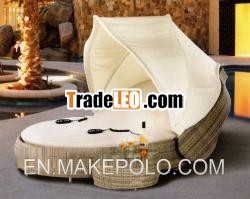 GH-BED-1201 (2PCS/SET) | (1pc)*sunbed:181*176*45 (1pc)*coffee table: 86*60*38 | 45kg | PERattan:8*1.3/1.4mm 4pcs*pillows | 42sets/40''HQ |