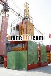 SC series Building Hoist adoptedcomputer aided design. Comparing with traditional building hoists,it is attractive, light, easy to handle, secure, applicable, andpopular. Depending on special needs of regular or irregularsections, the lifting capacity can reach up to 1~2 tons, and therunning speed can reach 28~38m/min. Moreover, VVVF speed regulationand PLC enable 0~68 limitless speed, automatic layer selecting andleveling as required. SC series Building Hoistis excellent in technical performance, more secure in operatingmechanism, and more compact in structure.