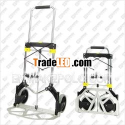 foldable hand trolley, a telescoping handle, retractable wheels andfold-up plate for compact storage.FOLDABLE HAND TROLLEY