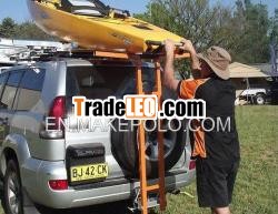 Kayak Loader - fits to your car in under 1MINUTE 1.The StrongArmKayak Loader made by the Aluminium, the light isonly 7.5kgs and easy tohandle. 2.Assemblyof the Strongarm Loader very easy 3.Adjustthe Strongarm loader to suit your vehicle from 1200mm to1500mm high this can be a suburban vehicle, 4WD, ute ortransitvan. 4. TheStrongarm loader is spring loaded which helps pullforward when UNloading and stops short of hitting thevehicle. The whole process helps add an extra pair of ''strongarms'' to support your load whilst you manoeuvre and alignthe load and is designed to lift up to 55kg. The StrongArm KayakLoader makes loading and unloading your kayak/canoe/hobie/surfski,a simple one person operation, takes 30 seconds to load and60 seconds to unload. Dismantleingthe product from your vehicle takes just 15 secondsand stores easily into your vehicle orgarage. Made from powdercoated structural gradealuminium complete with a steel baseplate. |