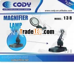 MagnifierLamp Cody 138 for Mobilephone Repairing . This lamp can be used asa lamp or a magnifying glass. As double combination ofmagnification and lighting with adjustable angle very convenientand practical for your needs.. It is an essential equipment forpeople in electronic industry, technicians, service/repair andassembly rework field.