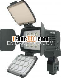 professional powerful low consumption 10-LED on-camera light. It has a solid sturdy built with barn doors and filters to provide maximum flexibility for shooting in different lighting environment