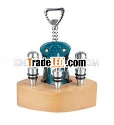 kitchen gadgets set3pcs wine stoppers with one wine opener with wooden beech
