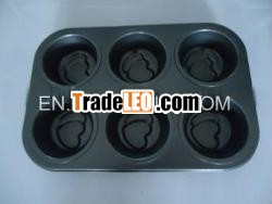 6 cups carbon steel bakeware XFLON Non stick coating,Size:26.8*18*3.2cm, Thickness:0.4mm