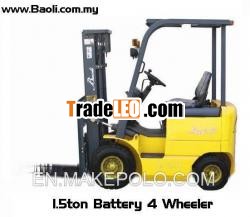 New Baoli Battery 4 Wheeler, Capacity 1. 0, 1. 5 & 1. 8 ton @Load Center 500mm. 2 or 3 stage mast wNew Baoli Battery 4 Wheeler, Capacity 1. 0, 1. 5 & 1. 8 ton @ Load Center 500mm. 2 or 3 stage mast with Lifting Height from 3. 0m (9. 8ft) to 6. 0m (19. 7ft) . Fitted with reliable GE DC Controller or Euro AC Controller, Hydraulic Smooth Power Steering. Clear LCD Meter and High Capacity Traction Battery. Most Cascade Forklift Attachment applicable!