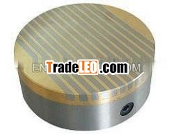 Rotary chucks are constructed with poles running off the edge. Theyoperate in the same way as the rectangular chucks do. The topplates are constructed out of brazing magnetic steel andnonmagnetic stainless steel. Dowel pins or screws may be insertedin the top plate to withstand the high torque of used on lathes,grinders and other machinery with heavy lathe cuts. Chuck topplates may be machined for work with odd configurations or anauxiliary plate may be added and removed for other work, leavingthe original plate intact.
