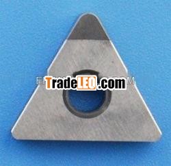 CBN tools made of CBN sintered material, is mainly used forcutting steel with low reactivity.CBN is roughly classified intotwo groups from the view point of microsturcture.One group is richin CBN content and has a structure of bonding CBN particles witheach other.It is used for cutting high hardened materials such ascemented carbide, cast iron, heat resistant alloy, and soon.Another group has CBN particles firmly bonded with a specialceramic bonding agent, and shos superior wear resistance andtoughness in cutting hardened steels and cast irons due to hestrong compactiong force of the CBN particles.