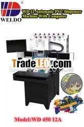WD Visualand Touch 12 Colors PVC&Silicon Dispenser Machine withdispensing valve dispensing on electroplating mold simulatingworker`s hand. can be used to can be used to produce pvc labels forclothing, bags, jackets and all kinds of soft pvc trademarks, Alots of Promotion Crafts and Gifts, like, pvc key chain, pvccup mat, pvc phone holder, pvc photo frame, pvc refrigeratormagnet, pvc wristband, pvc watch band, pvc luggage tag, pvczipperhead and soon, with large production capacity, and highquality.