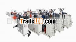 PVC counter rotating twinextruder available in sizes of EMD-65, EMD-90 and EMD-130 forprofile and compounding, output ranges from 100 to 800kgs/hr.