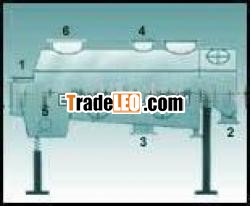 These driers are used for drying of free flowing powders not ofsticky nature.These driers are used for drying of free flowing powders not ofsticky nature. It consists of a vibrating table at the bottom ofwhich is fitted a perforated sheet. Hot air or gas is passed upwardthrough the sheet which fluidizes the material. The vibration andslope of the table conveys the materials forward towards thedischarge end. The material is charged at one end of the table anddischarged at the other end.