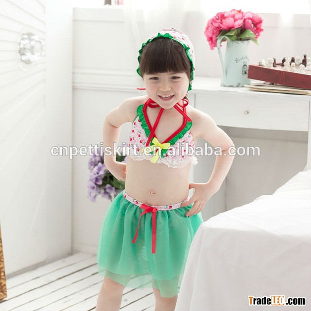 Cute Ruffle Chilren swimwear kids swimsuit green lovely baby Factory Wholesale children swimsuit fan
