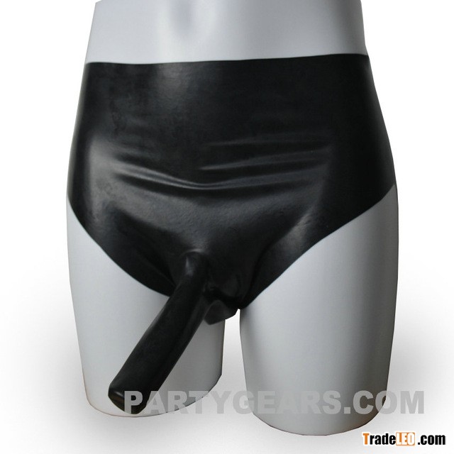 2016 Hot ! Mould Latex shorts with penis condom adult male rubber panties SML 3 size available