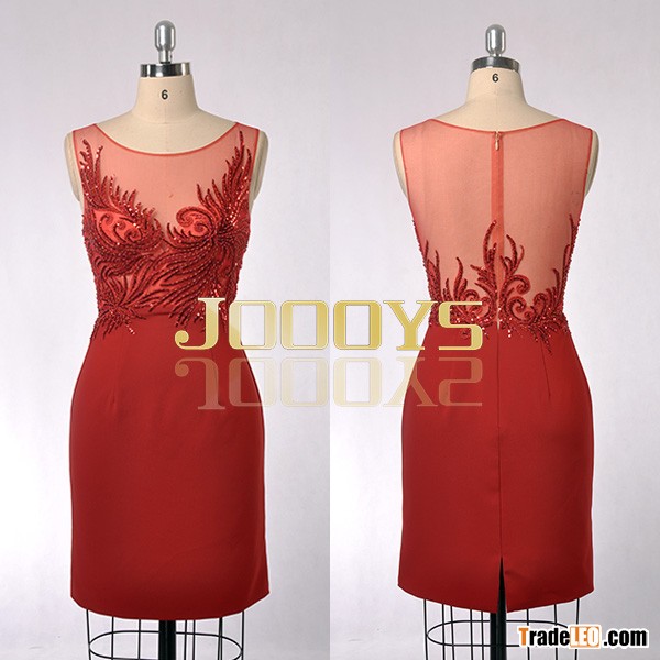 Women Sleeveless Embroidery Beaded See Through Short Slim Party Cocktail Dress JS90121