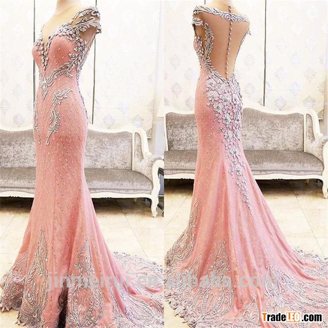 Real Image Long Evening Dresses 2016 Sexy Illusion Deep V-Neck Crystals Beaded Sheer Back Mermaid Ev