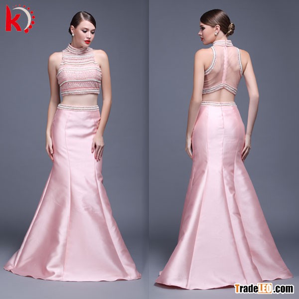 2016 latest design fashion high neck beaded sequin sleeveless see through long puffy two piece prom