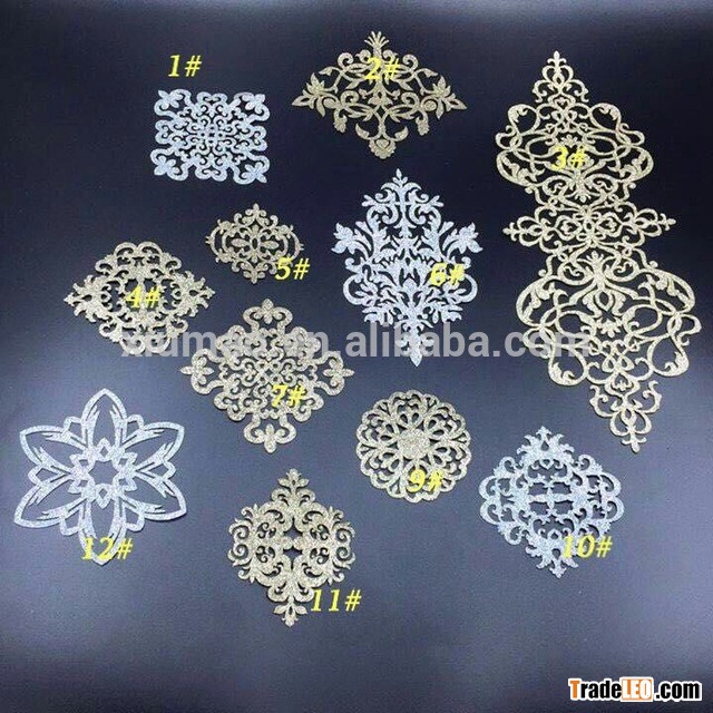 New design custom laser cut iron on heat transfer flower glitter motif patch