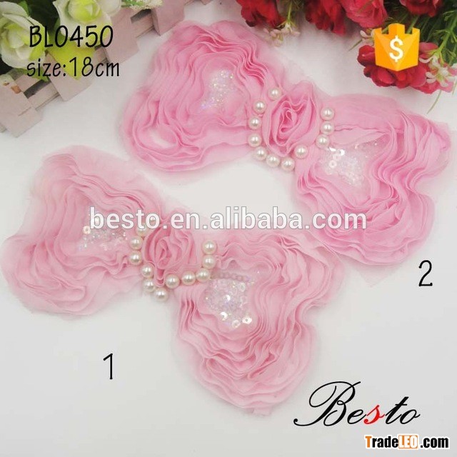 7inches Vintage pearl bow chiffon applique for baby dresses