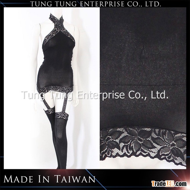 Lace halter neck and lace garter belt sexy nylon sheer bodystocking