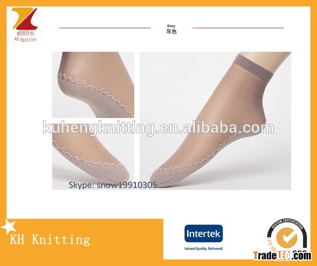 Women transparent antiskid ankle socks silk stockigs with cotton sole
