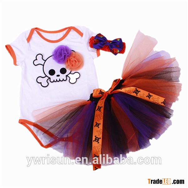 Halloween purple orange skull print baby bodysuit romper tutu short sleeves and headband