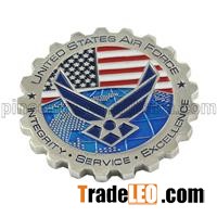 Pls note :Generally, we just offer OEM/ODM/ custom service . Most of products we made are our customer own design . And you just need tell us your own design , size , material . Then we can help your ideas happened . 1:Name:air force challenge coins2:Material:Brass3:Sample:Free 4:Thickness:1.2 mm ( or customised )5:Technical:Stamping 6:Plated:silver 7:Color:Pantone color chartPackingopp bag/pcs ,50/100pcs one paper carton or as your request .Air Force Challenge Coins