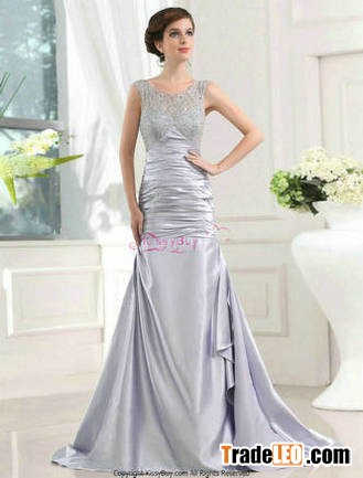 Scoop Neck Elastic Satin Lace Silver Evening Dress