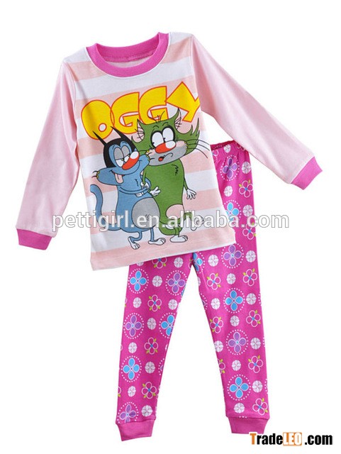Newest Girls Pajamas Suits Pink Cotton Shirt And Red Cartoon Pants For Kids Sleepwear Sets Wholesale