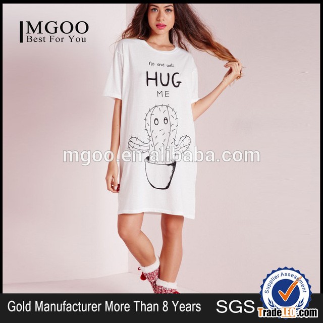 Comfortable 100% Cotton Hug Me Slogan Nightwear Shirt Unisex Loose Sleeping White With Carton Dress