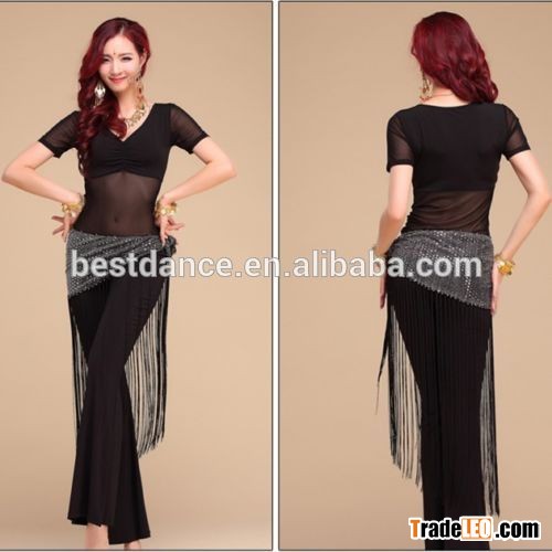 BestDance Sexy Ladies Belly Dance Costume Practice Top & Long Pants & Hip Scarf Belt Trainin