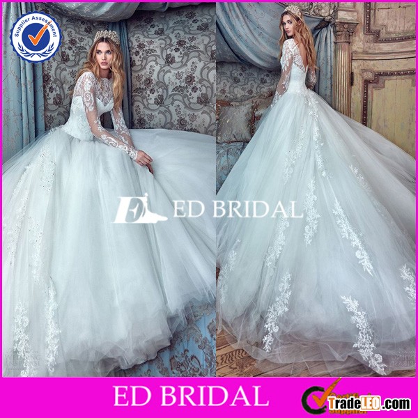 Sexy Ivory Lace Long Sleeve Alibaba Wedding Dress 2016 Tulle Bridal Gown