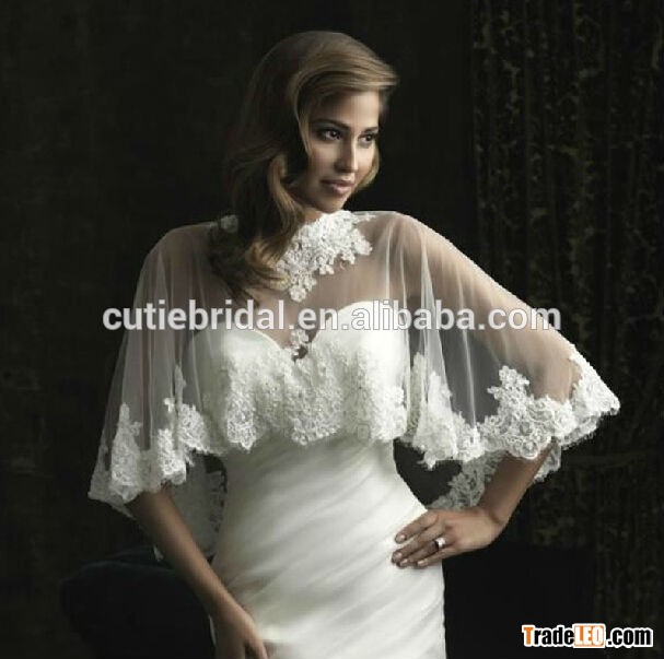 Elegant lace trim soft tulle wedding cape for bride custom made
