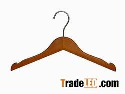 Flat body with special notches on shoulders, cherry color finish. With chrome finish hook. It is a kind of elegant kids top hanger.