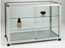 1.Product: glass showcase with castors2.Glass body give a full vision show