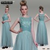 Dropshipping New Arrival floor length beaded tulle sexy embroidery long aqua green evening dress