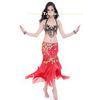 Red Milk Silk Chiffon Turkish Belly Dance Performance Costumes with Shining Coins