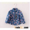 Girls' strawberry print denim shirt