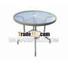 ART.:HLO-045T Round tableSize:D90x70(h)cmSpec:Steel legs D25/22x1.0mm tempered glass top T5mm w/steeledgePckg:1pc/c