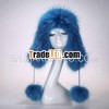 13C004-1 deluxe raccoon fur blue earflap russian fur hat