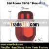 - Wheel nutsStd Acorn 13/16Hex-RedPART#Thread SizeLengthHexPlated711440RD7/16-2036mm21mmZinc or chrome711442RD1/2-2036mm21