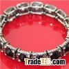 Jet Glass Stone Stretch Bracelet Gun Metal Plating