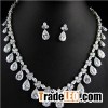 Princess CZ Cubic Zirconia Crystal Necklace Earrings Set Wedding Bridal