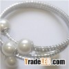 Flexible Rhinestone Glass Pearl Bracelet Bangle